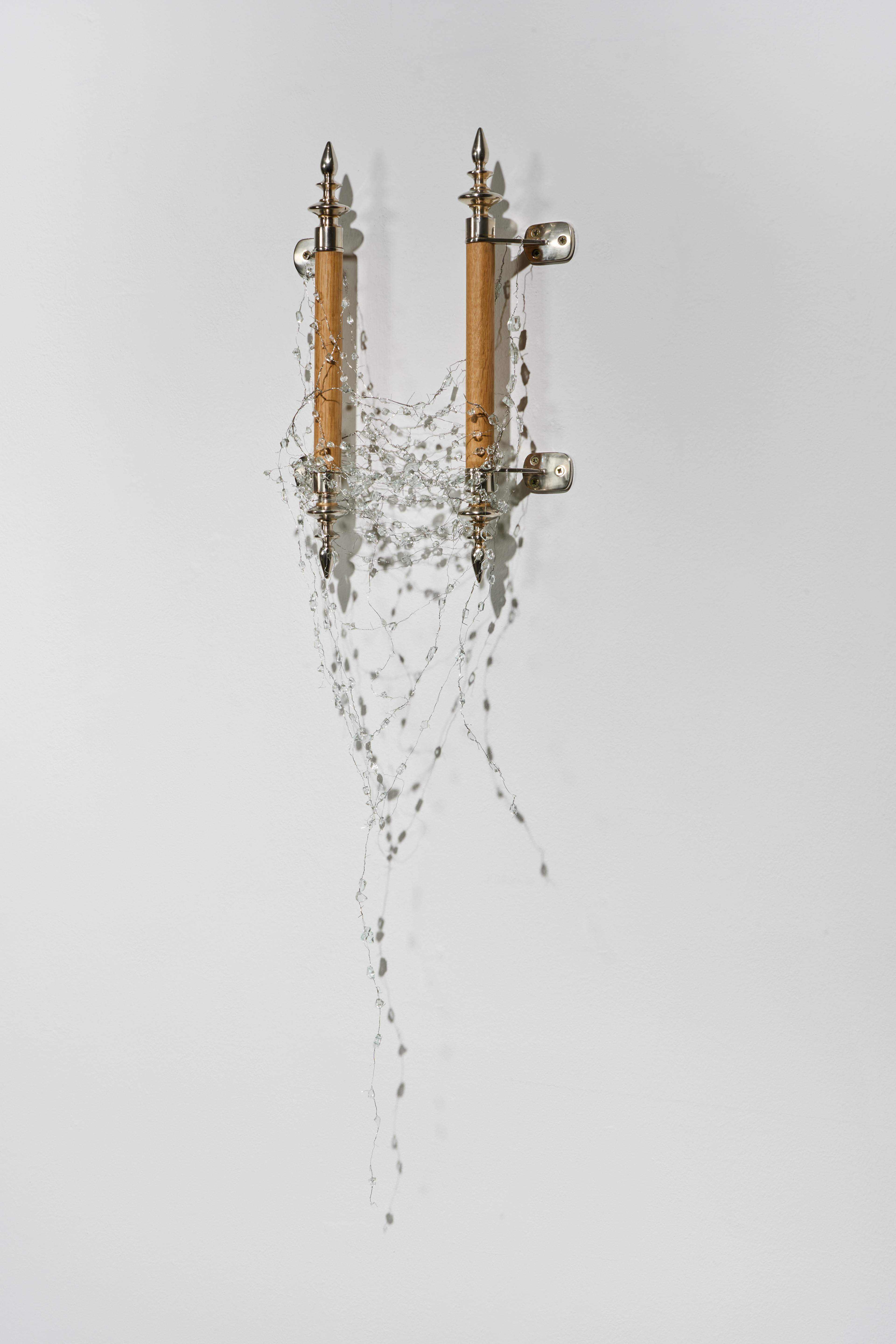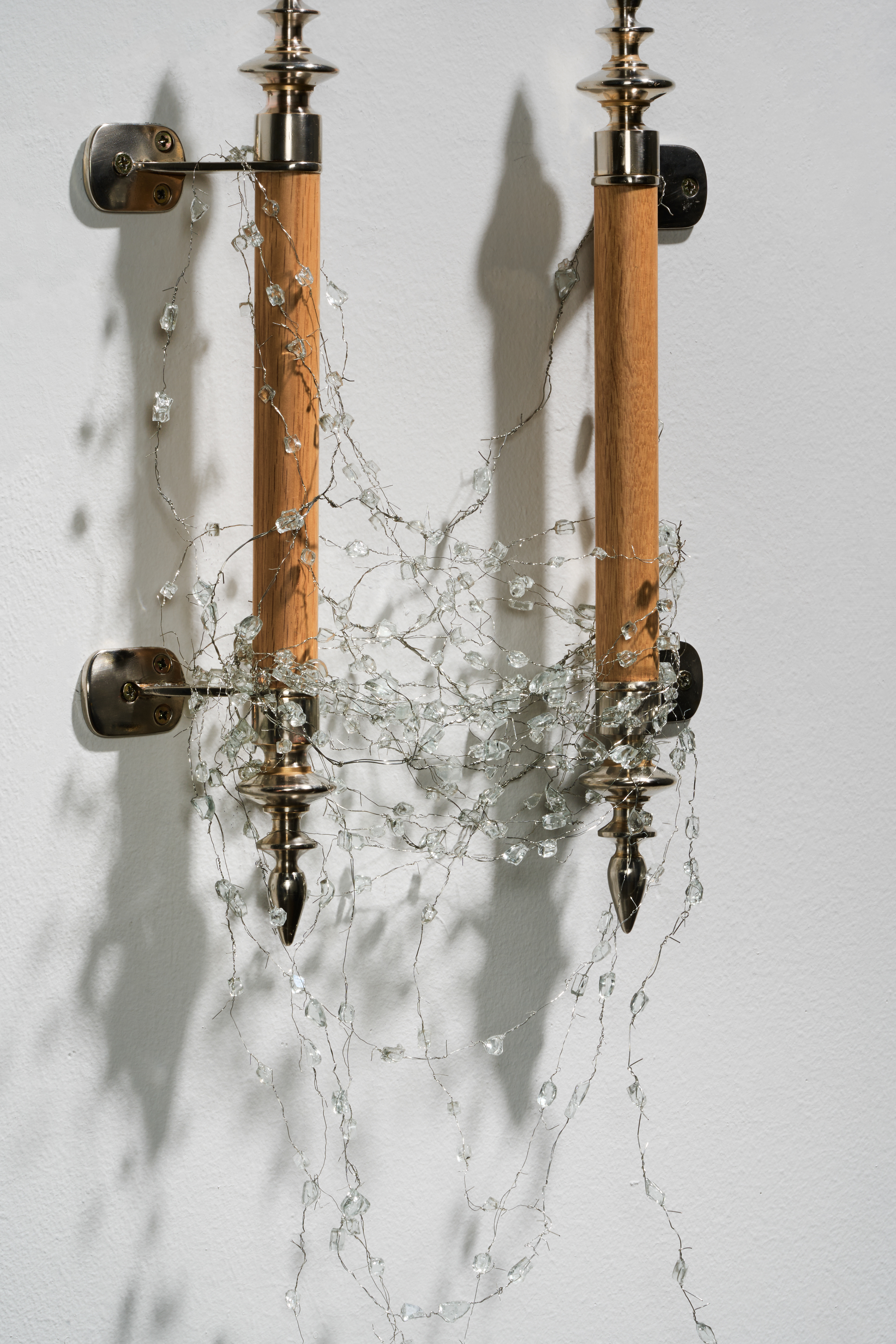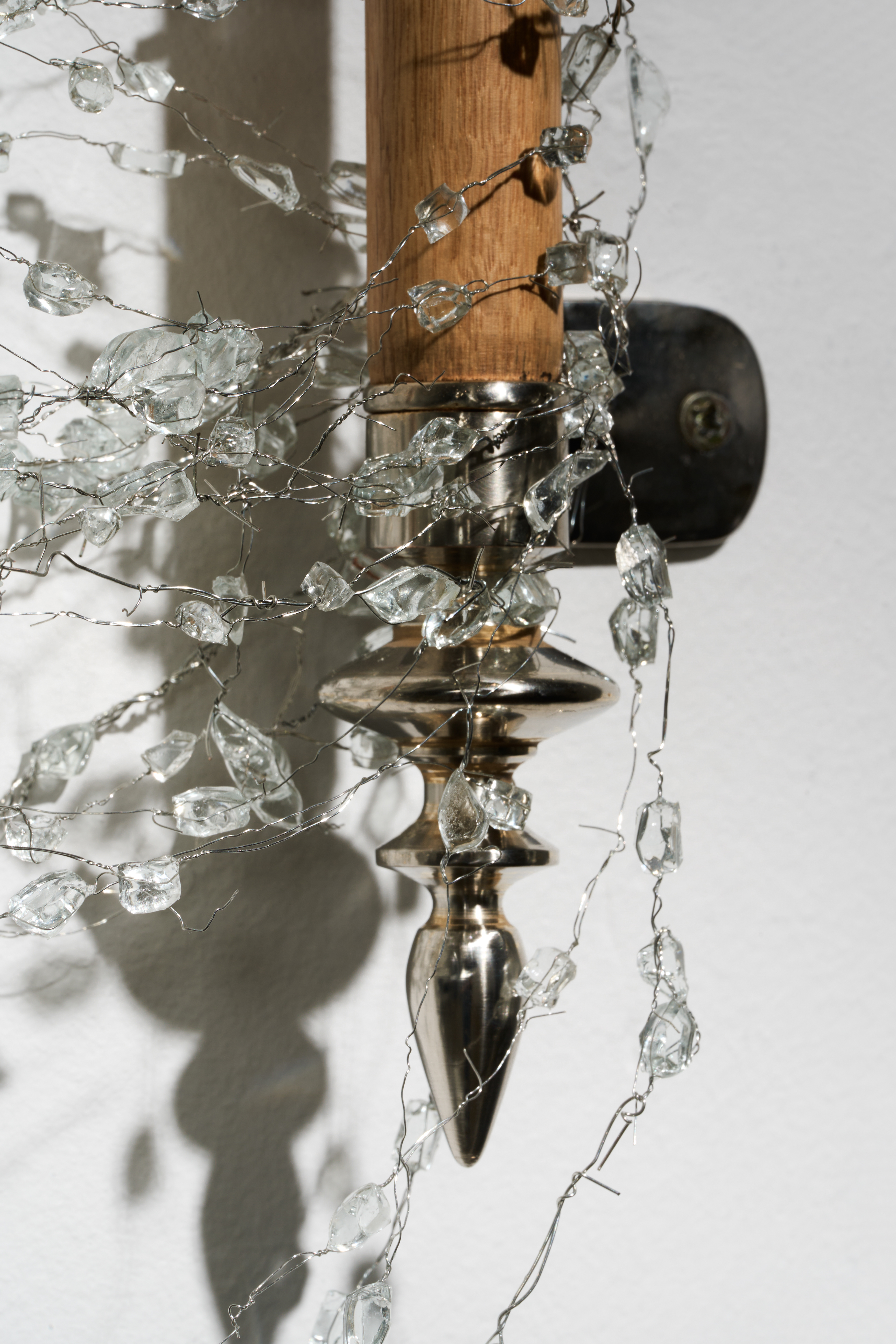수집한 강화유리 파편, 와이어, 주석, 나무
