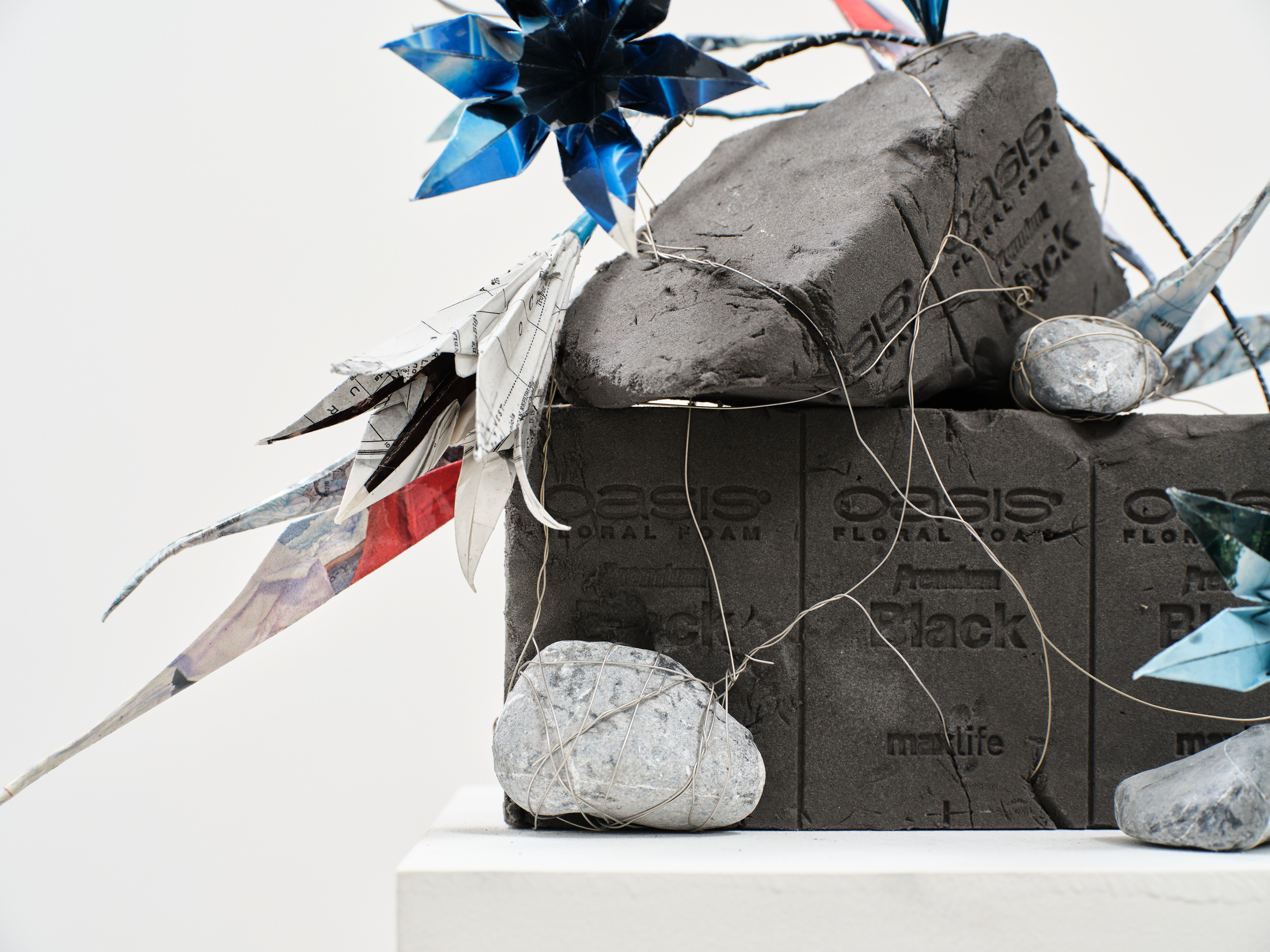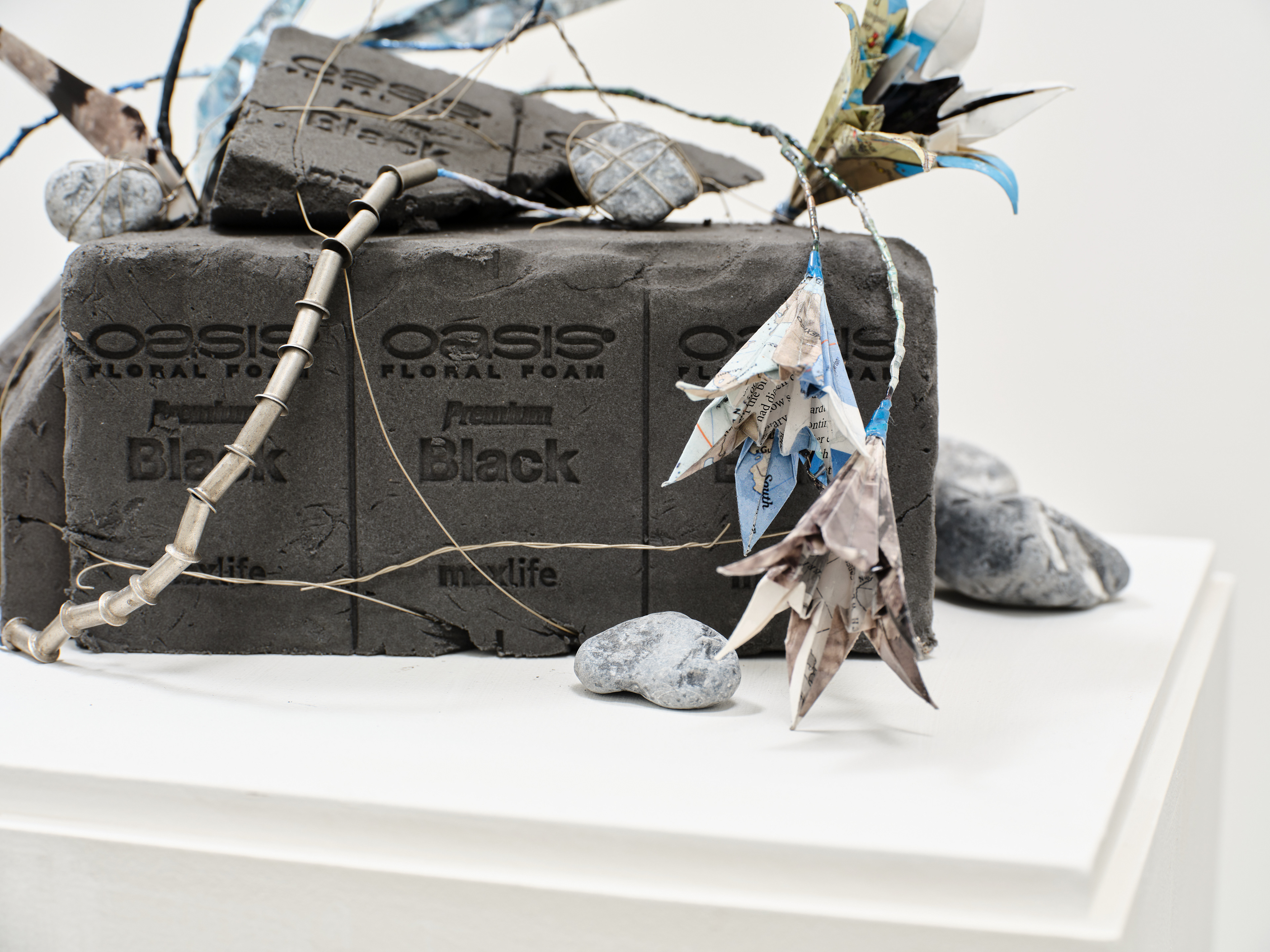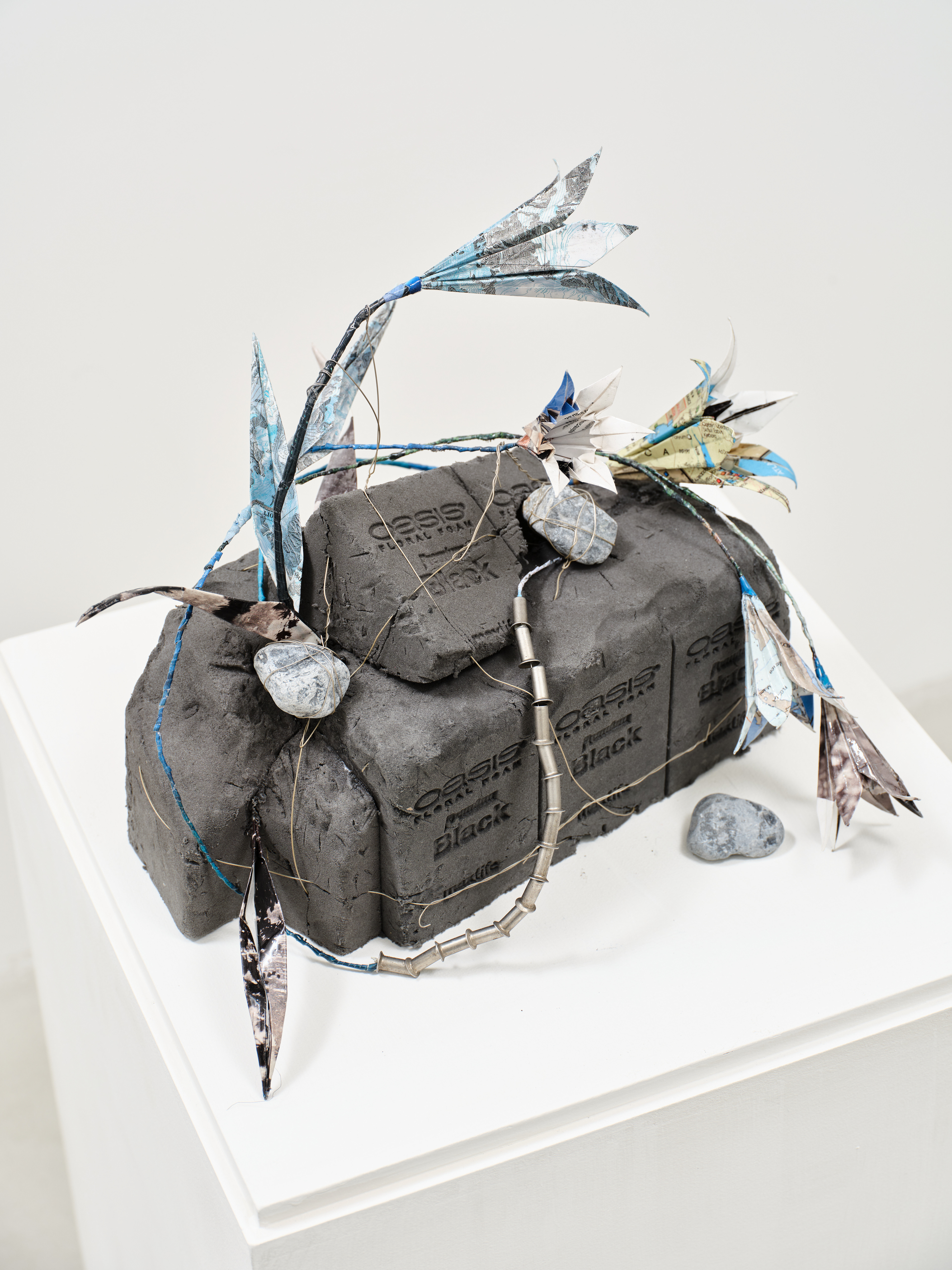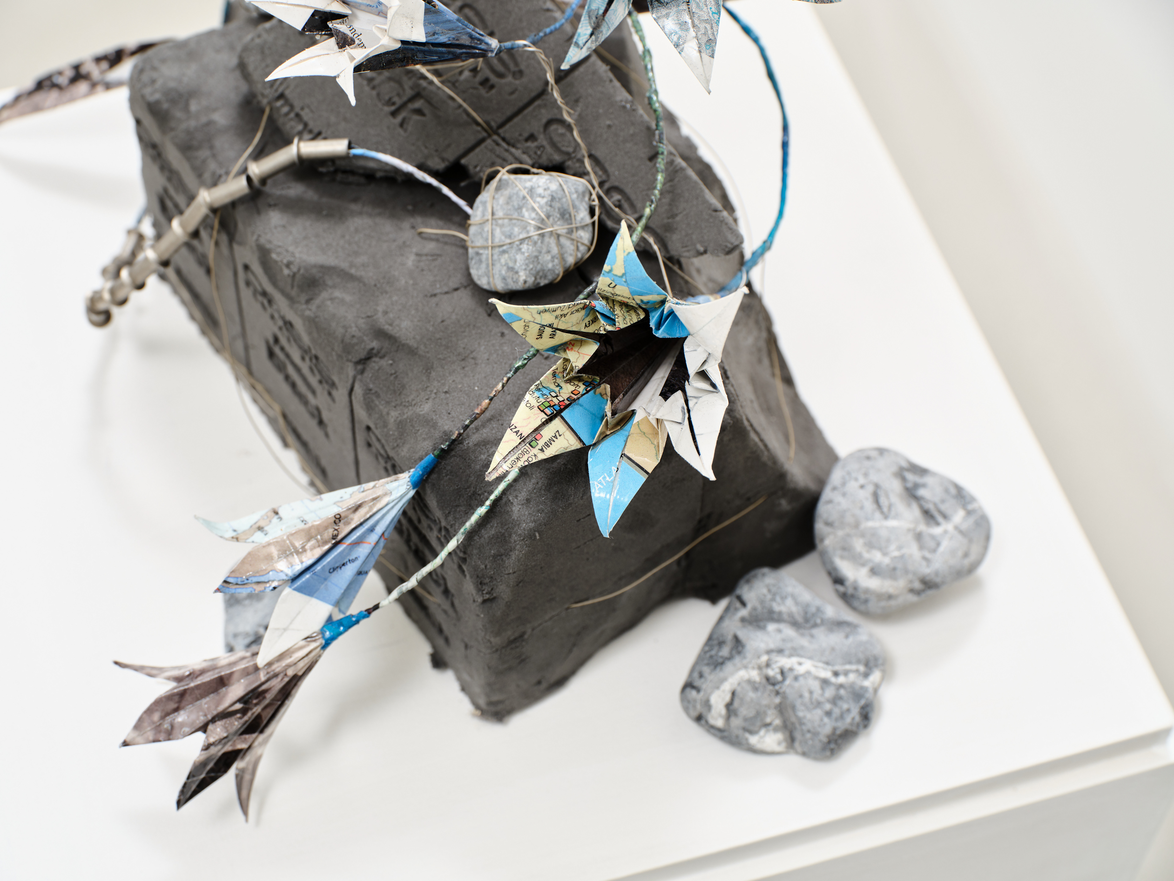 National Geographic, published world maps and archive materials, wire, resin, floral foam, landscaping stones