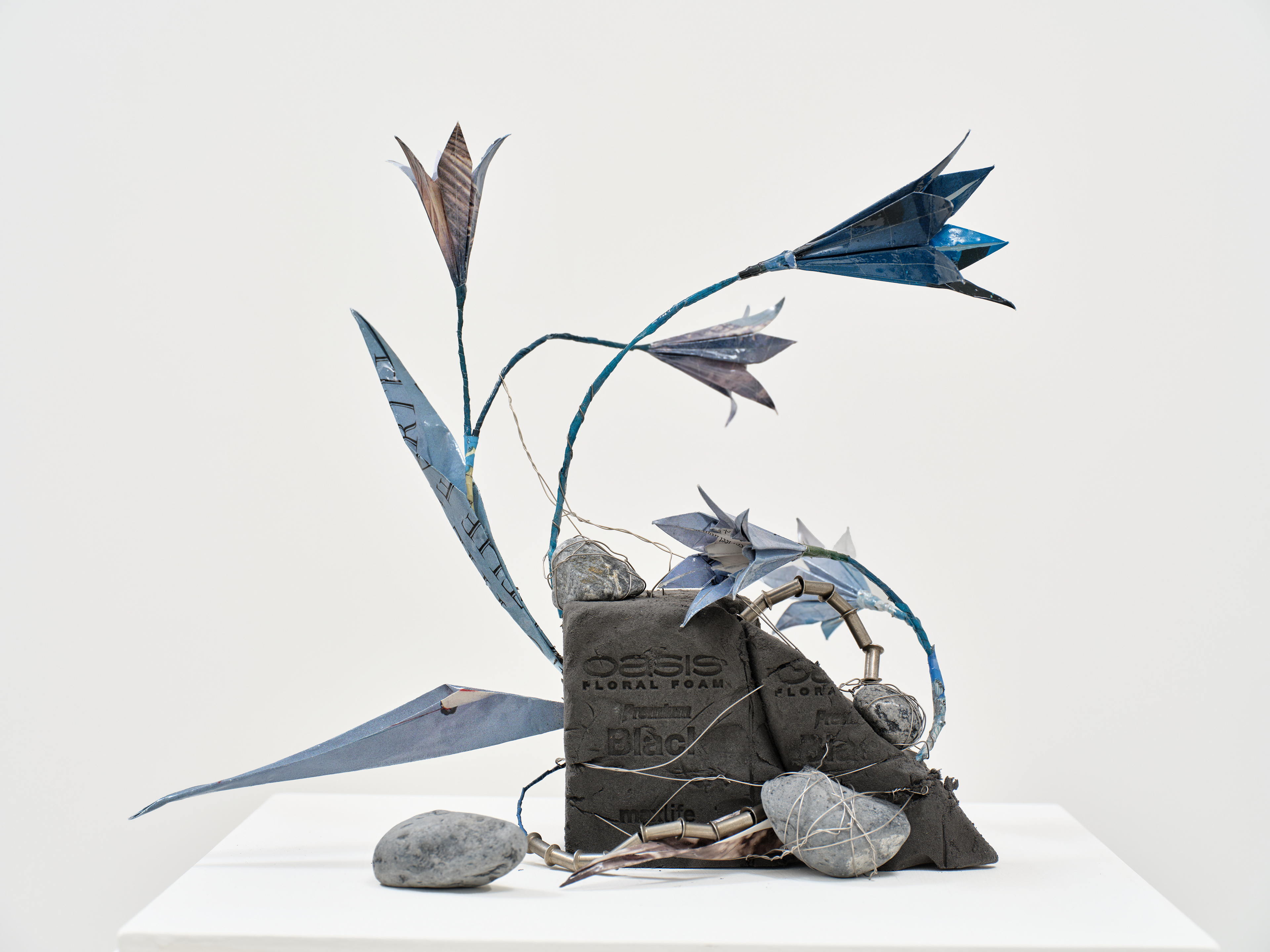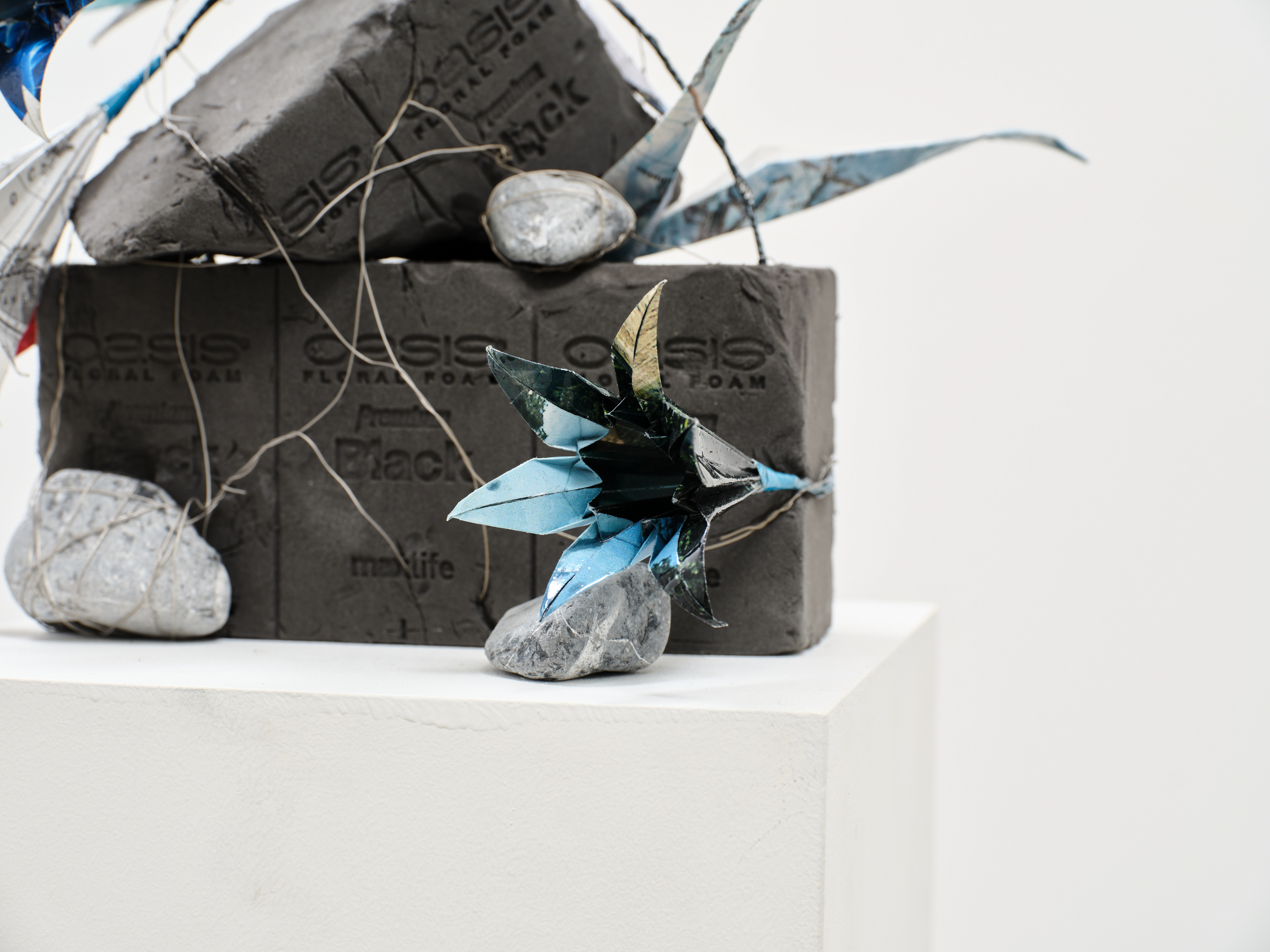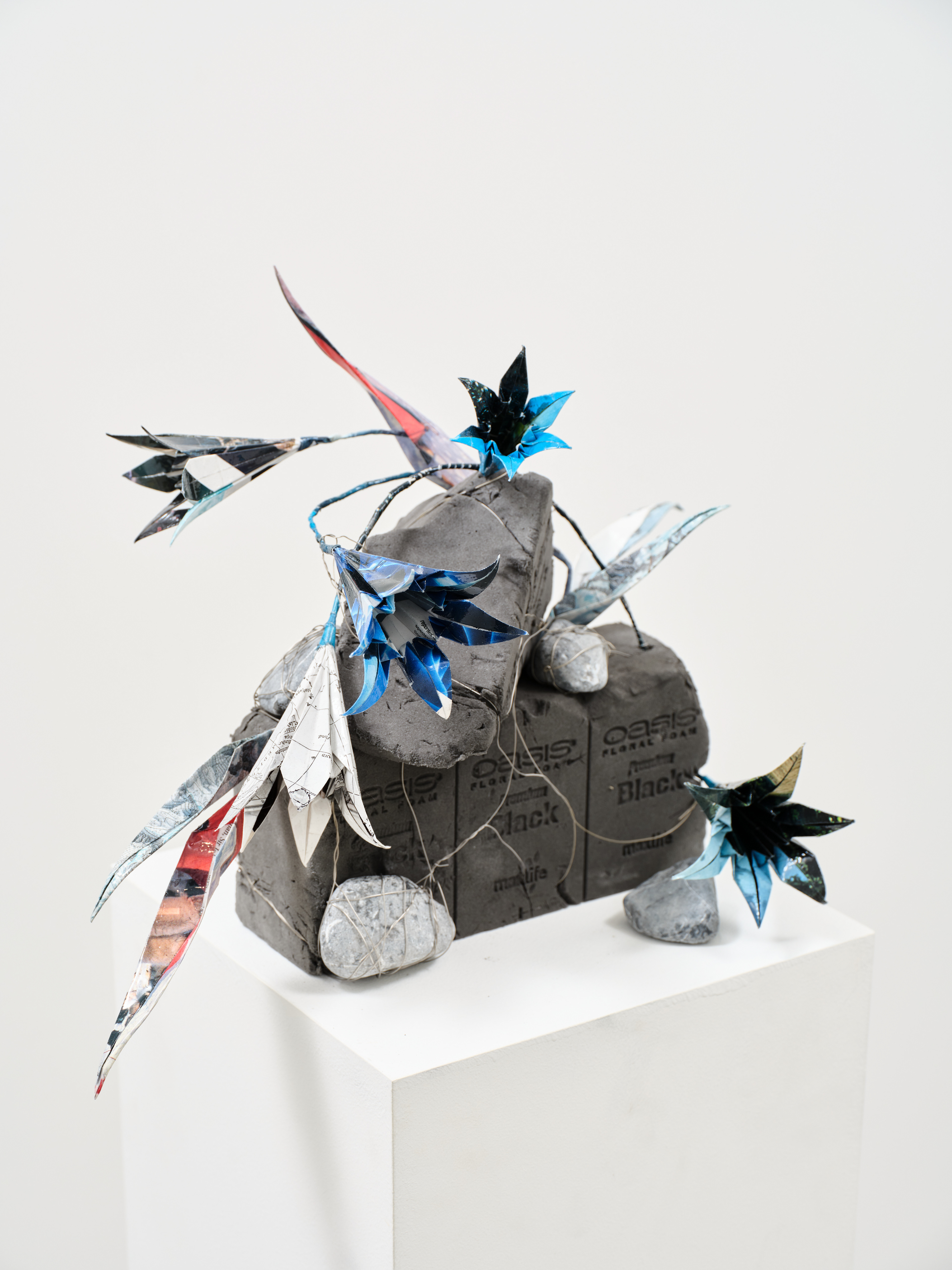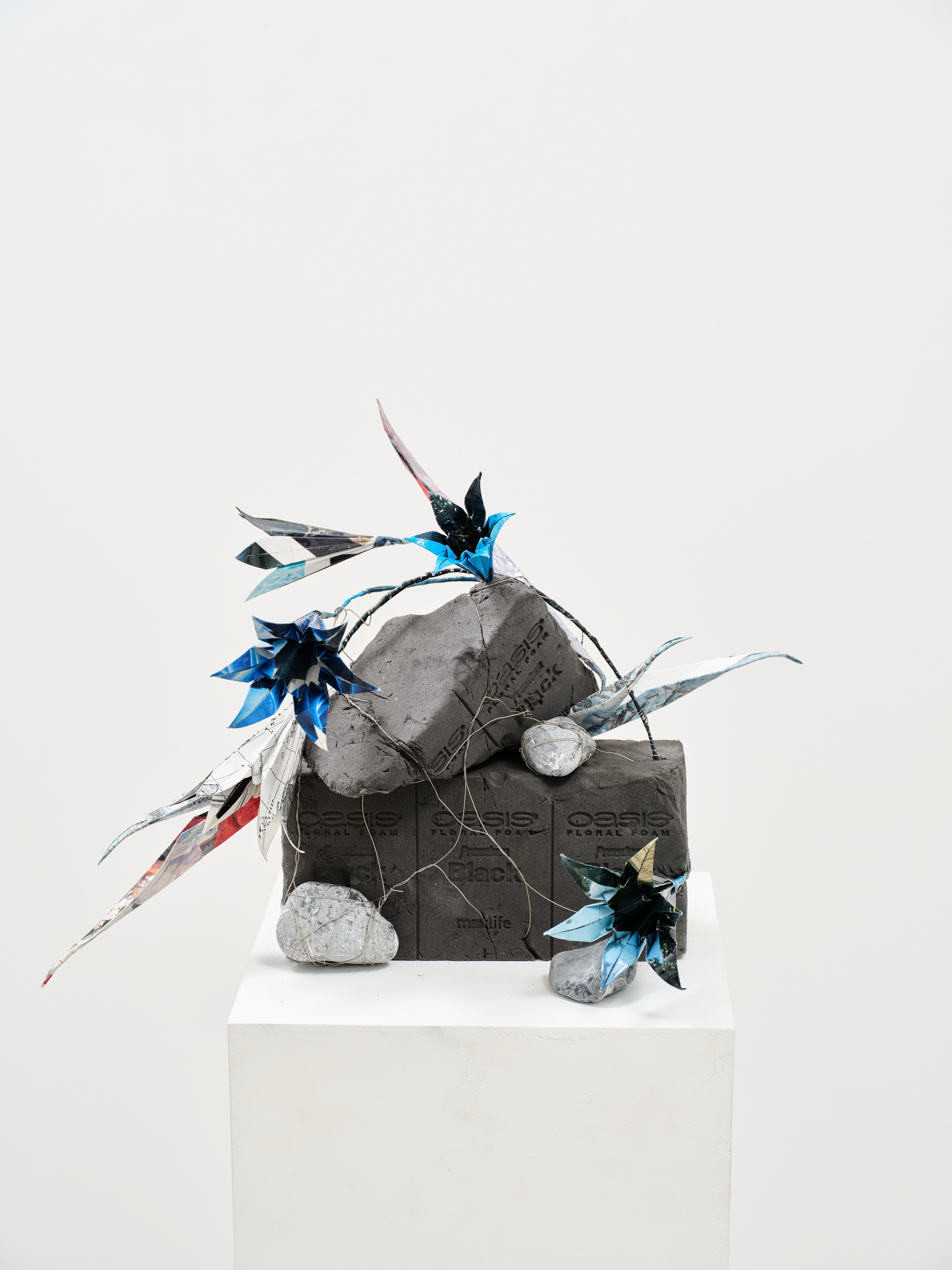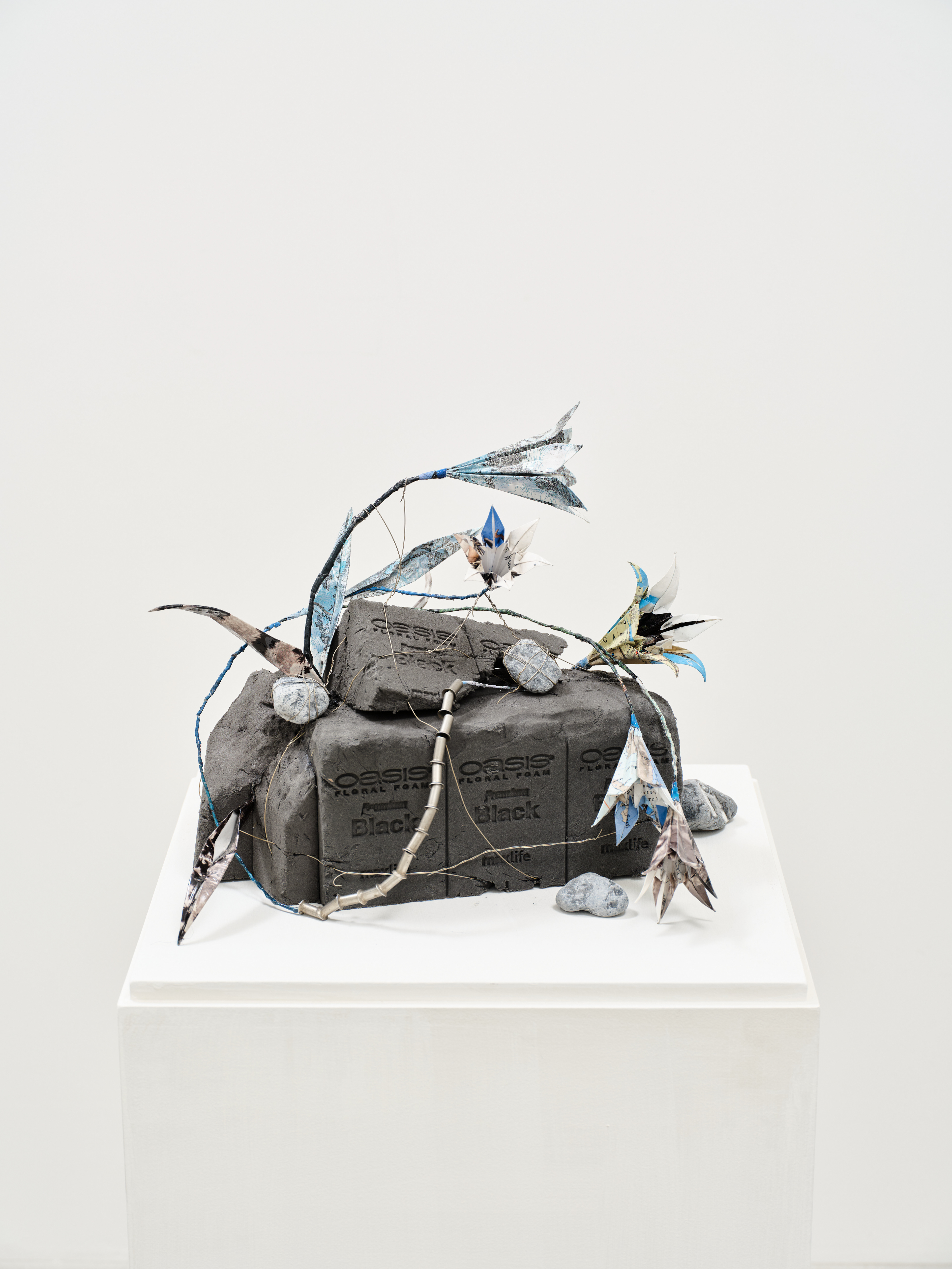National Geographic, published world maps and archive materials, wire, resin, floral foam, landscaping stones