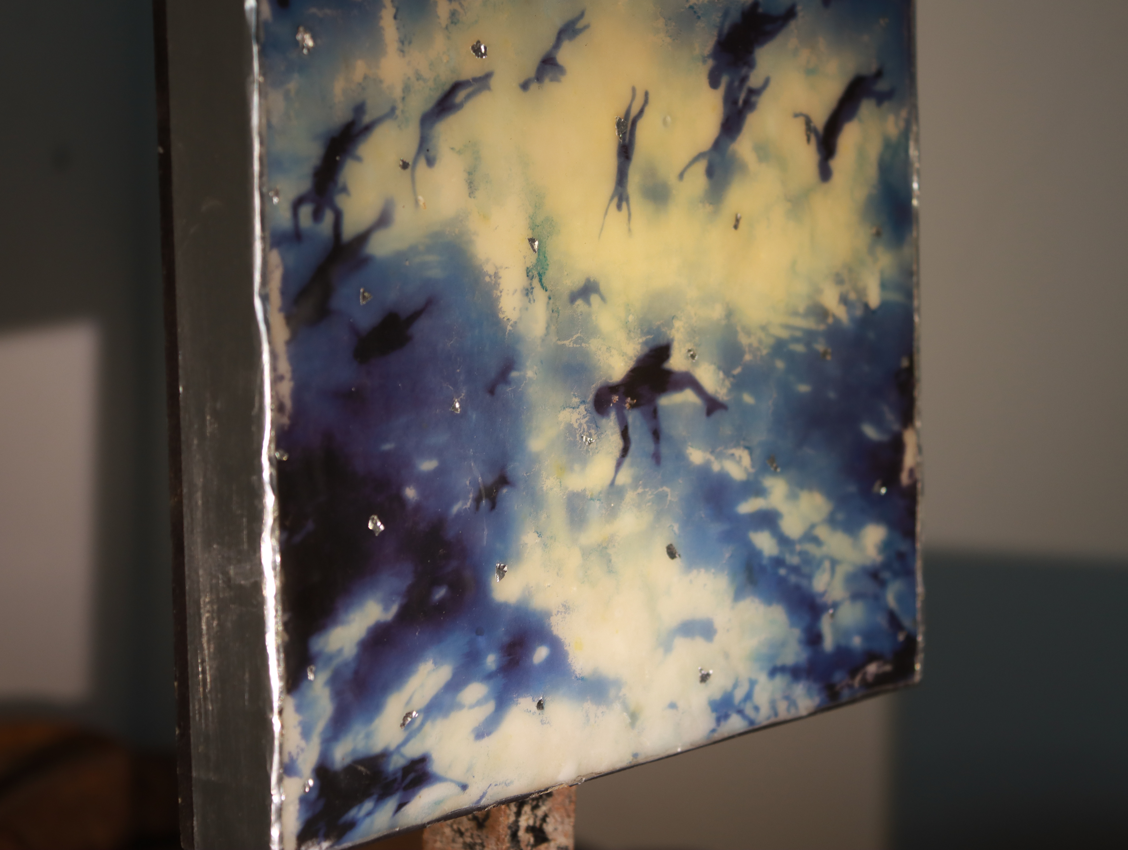 나무판넬에 밀랍, 손으로 전사한 이미지,
